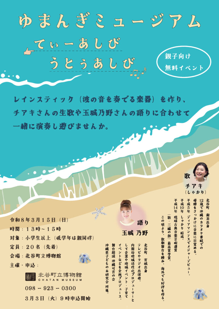 ●出演:[歌・演奏]チアキ(しゃかり)[語り]玉城乃野、参加者の皆様
