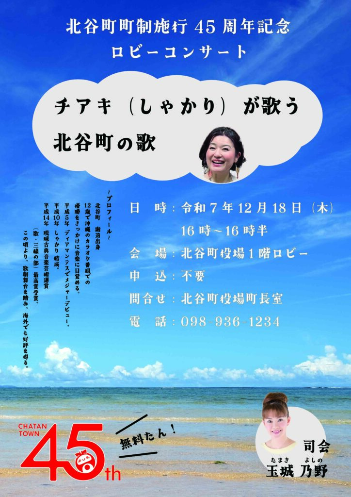 北谷町町制施行45周年記念ロビーコンサートのお知らせ